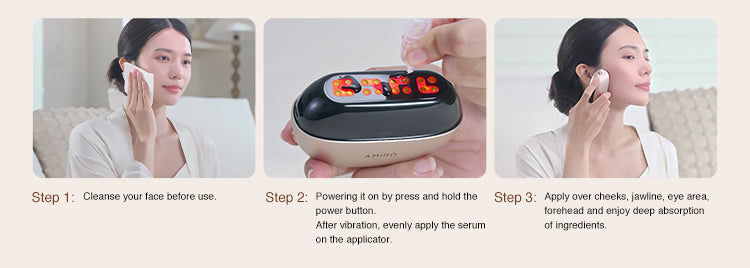 The 3 skincare modes, paired with any type of serum, stimulate absorption and depth, amplifying the power of the essence, for superior skincare efficacy.