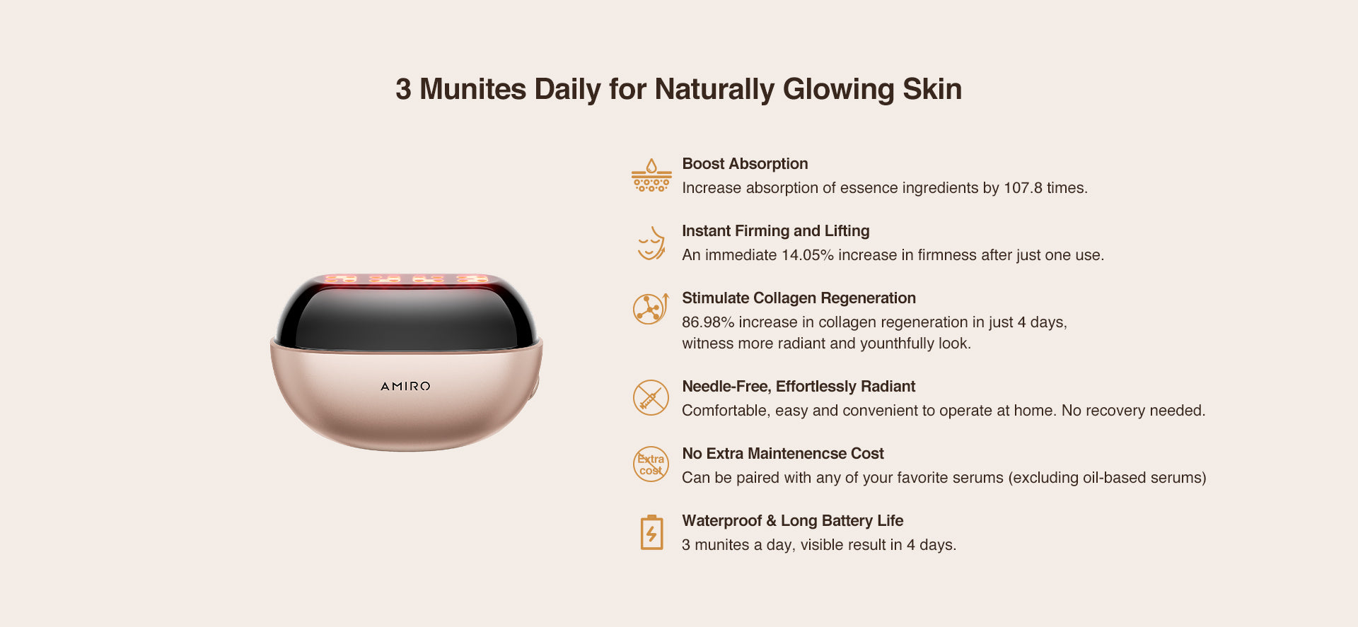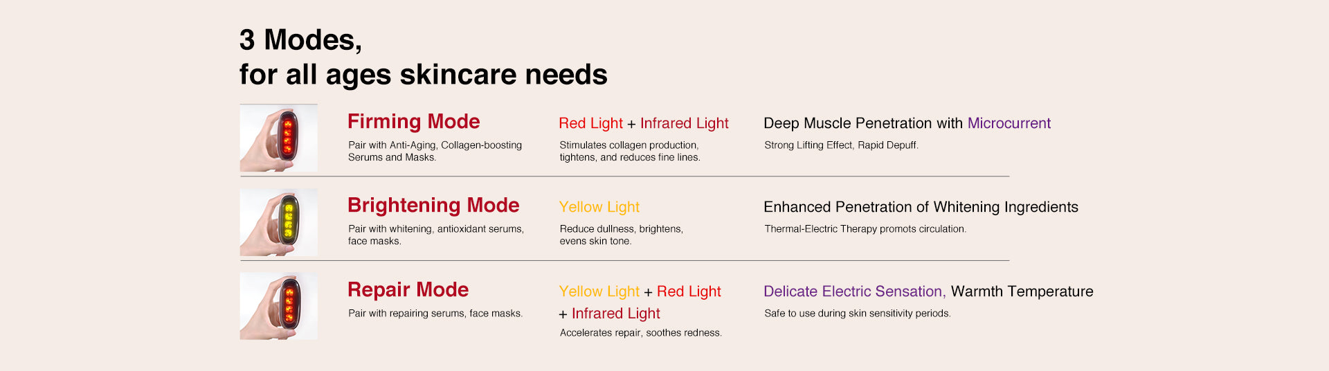 Powered by a triple-threat of advanced technologies—Light Theraphy, Thermal-Electric Theraphy, and Squarewave Microcurrent—this revolutionary formula tightens, brightens, and rejuvenates your skin in just 3 minutes.