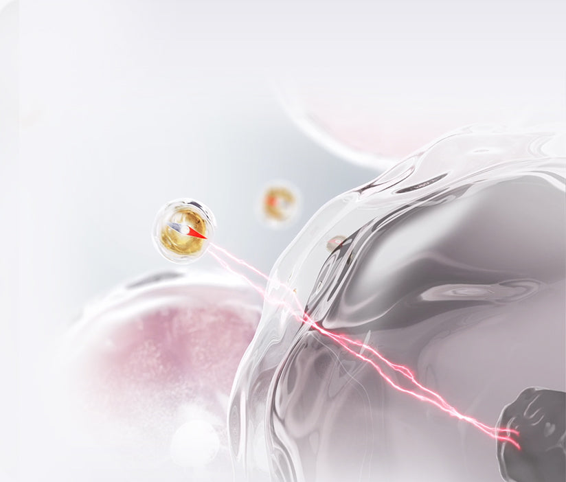マイクロカレント: 低レベルの電流が肌の奥深くまで浸透し、成分の浸透経路を広げます。また、細胞エネルギー(ATP)を高め、細胞のターンオーバーを促進し、ハリと輝きのある肌へと導きます。
