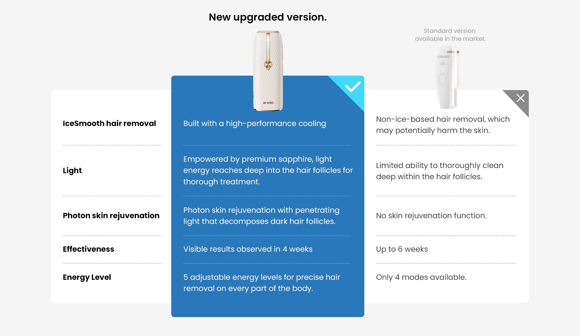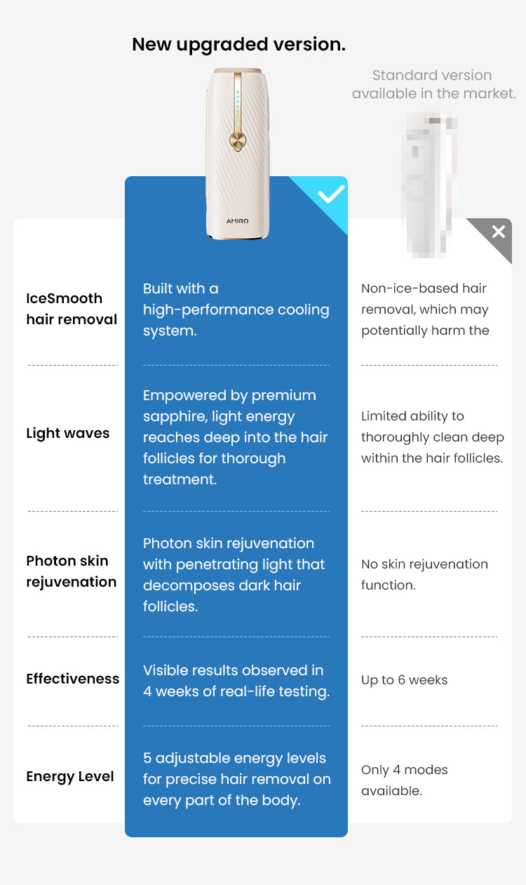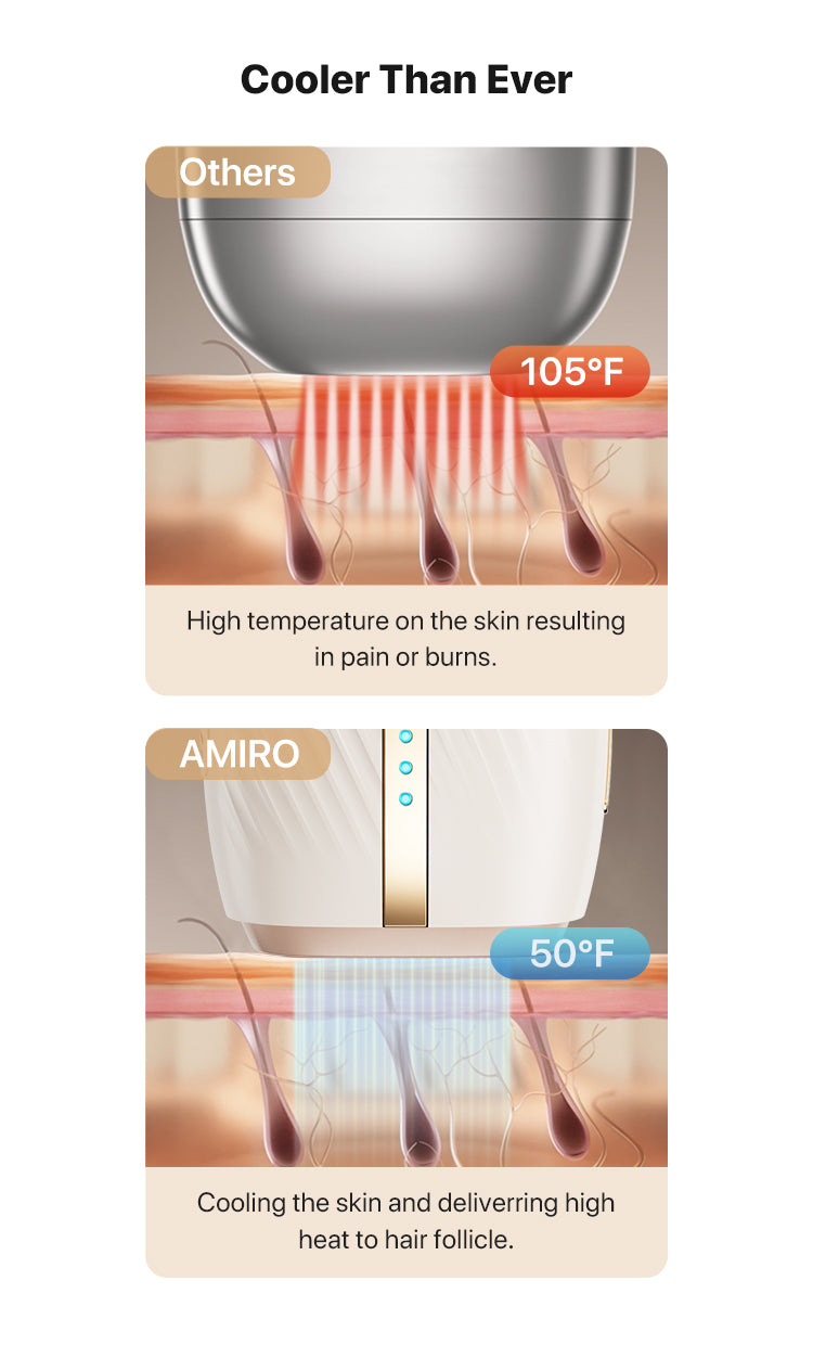 AMIRO IceSmooth is the home-use version of professional ice-cooling IPL hair removal treatments. It offers clinic-grade IPL technology proven to remove hair from its roots while maintaining a cool 50°F, ensuring your skin is smoothed with ease, comfort, and safety.
