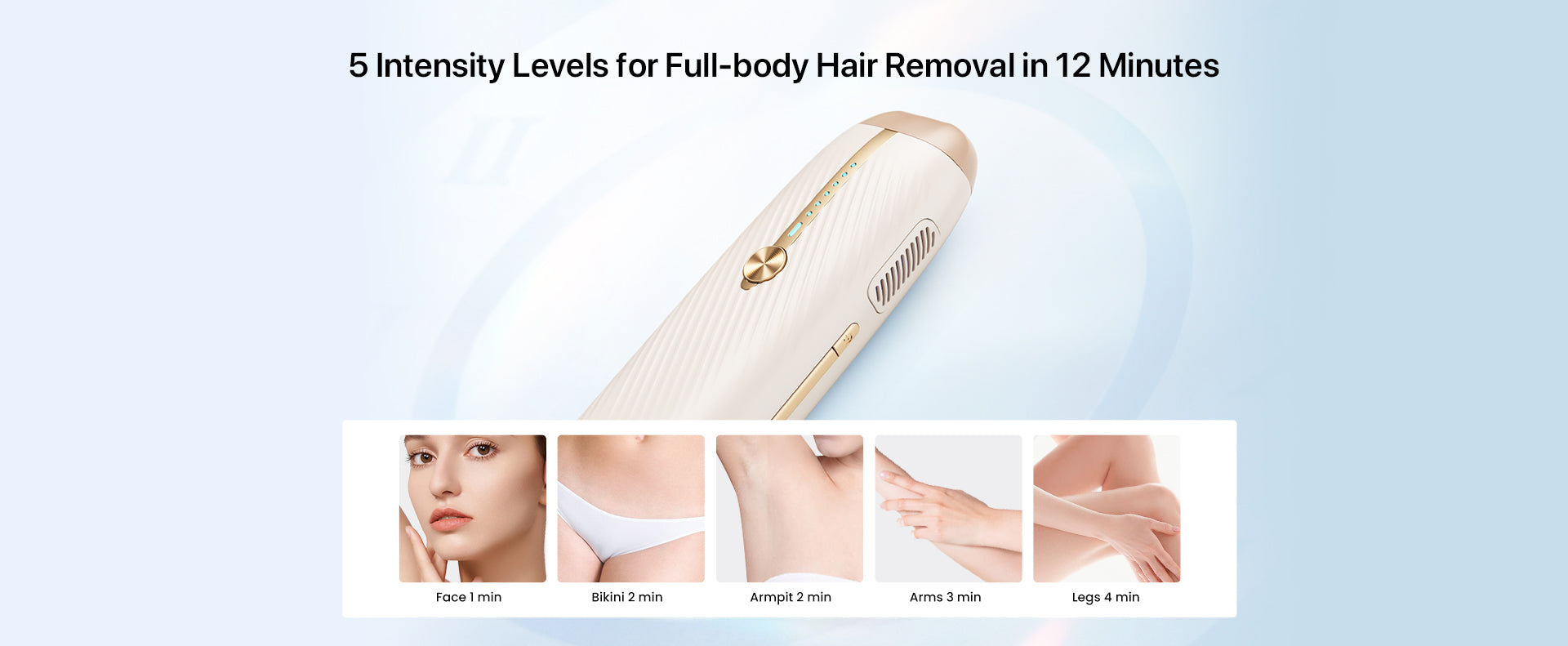 Each click delivers double pulses for efficient and effective hair removal, making the process twice as fast as standard treatments. Achieve full-body hair removal in just 12 minutes.