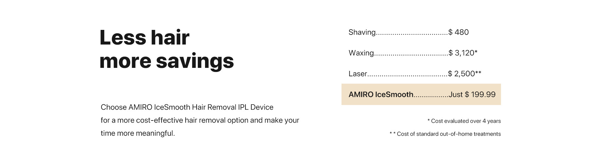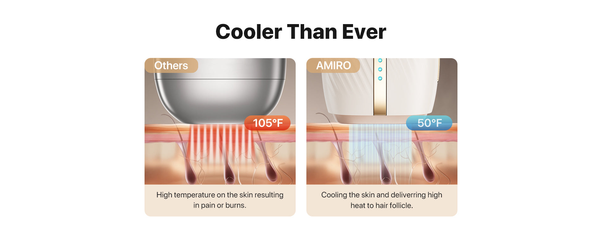 AMIRO IceSmooth is the home-use version of professional ice-cooling IPL hair removal treatments. It offers clinic-grade IPL technology proven to remove hair from its roots while maintaining a cool 50°F, ensuring your skin is smoothed with ease, comfort, and safety.