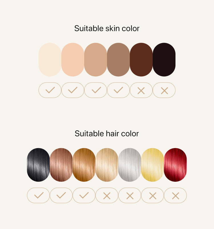 Similarly, IPL may be not as effective on individuals with light hair colors such as blonde, gray, or red. This is because these hair colors have less melanin content, making it challenging for the IPL device to target the hair follicles effectively.To ensure the effectiveness and safety of IPL hair removal, we recommend users to refer to the provided skin tone chart before making a purchase.