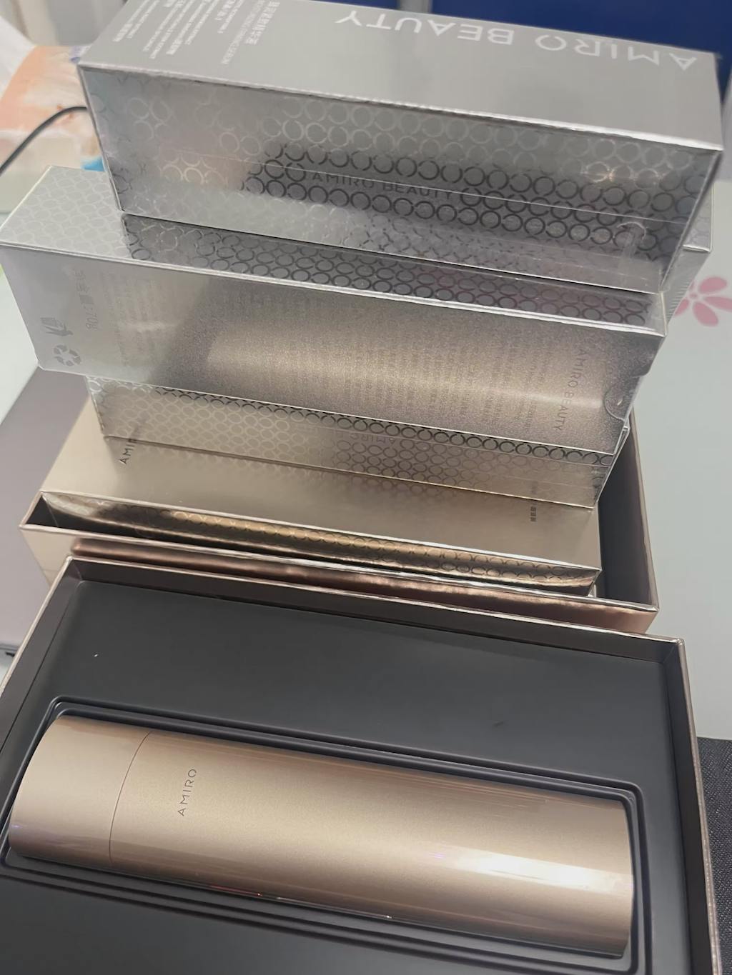I am a man and I have Dr. Arrivo Zeus II. I love my Zeus II as you can see the result immediately. However, later I realized that Zeus II is not really eye’s friendly due to its big conduction head. I did my research about Dr. Arrivo eyes device and believe they are too expensive and too little function. So I did my research about facial device for eyes and found Amiro Turbo. According to its advertising, Amiro Turbo is the latest version with eyes mode, it comes with yellow light help reduce dark circles and EMS helps reduce puffing eyes bag. It’s smooth triangle conductive head seem to be a good fit for eyes area too. Therefore I decided to give it a try during Amiro’s promotion.